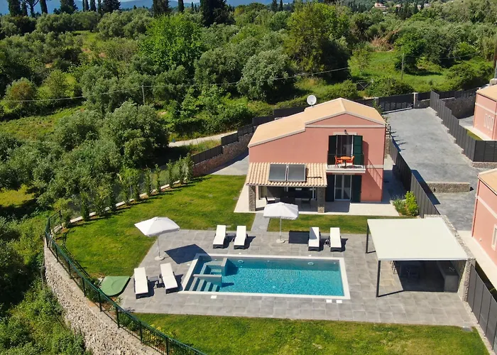 Korfu Uluslararasi havaalanına arabayla 15 dakika içinde ulaşılır. Villa dağ manzaralı verandaya sahiptir. Bölgeyi keşfetmek için kıralık arabalar sunulabilir.